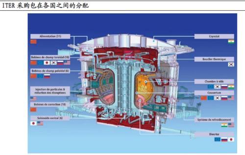 目前ITER主導(dǎo)下的國內(nèi)可控核聚變托卡馬克產(chǎn)業(yè)鏈:主要集中于主體部分,包括磁體系統(tǒng)、包層模塊、偏濾器、面向等離子體材料(包層第一壁、偏濾器靶板材料)、增殖單元材料(中子倍增劑)等環(huán)節(jié)。