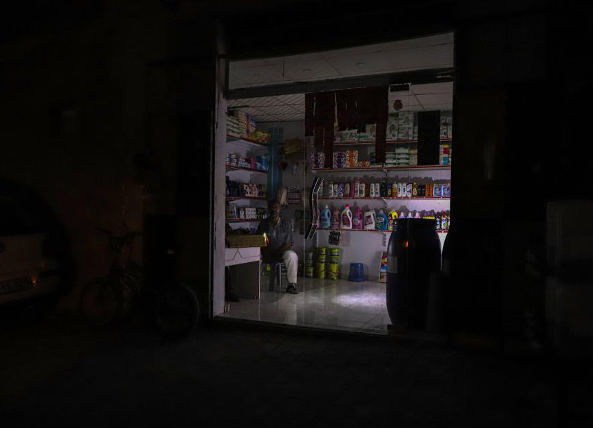 當(dāng)?shù)貢r(shí)間2023年10月16日,加沙地帶的汗尤尼斯,黑暗中的店鋪。