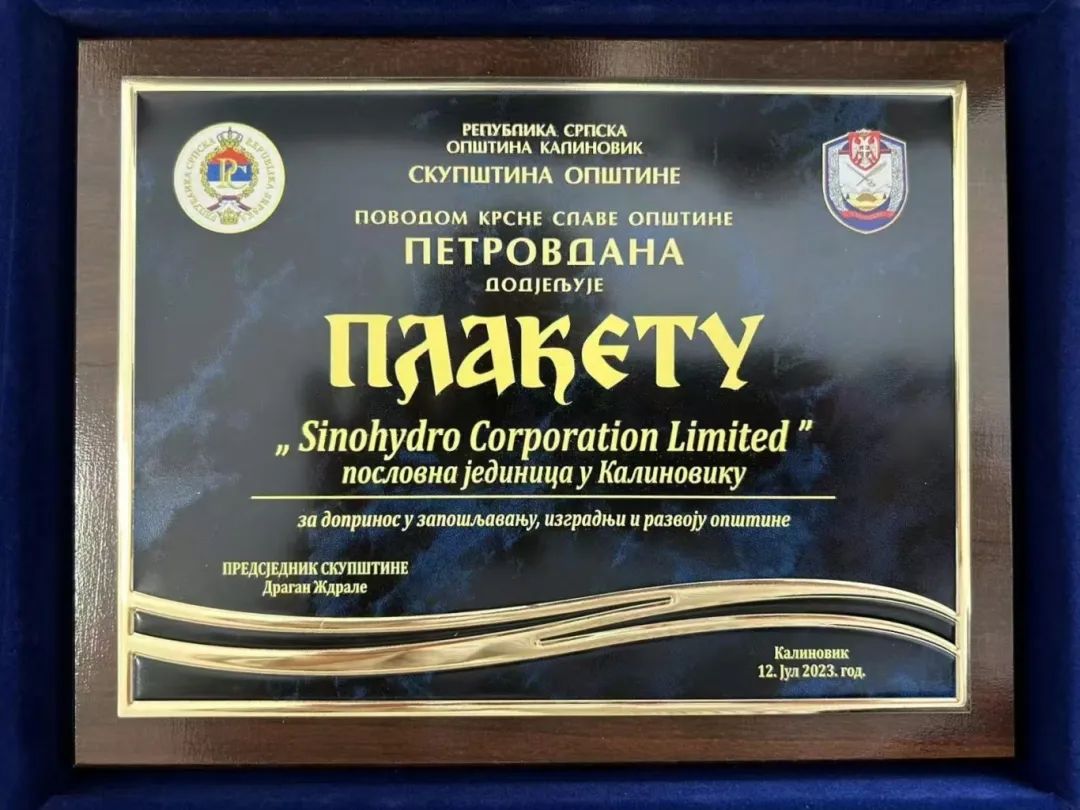 項目的建設受到當?shù)卣母叨戎匾暎?023年,波黑優(yōu)樂高水電站項目部獲波黑卡利諾維克市“杰出貢獻獎”,這是當?shù)卣谟桉v在企業(yè)的最高榮譽,表彰他們履行企業(yè)社會責任,為帶動當?shù)亟?jīng)濟作出的貢獻。