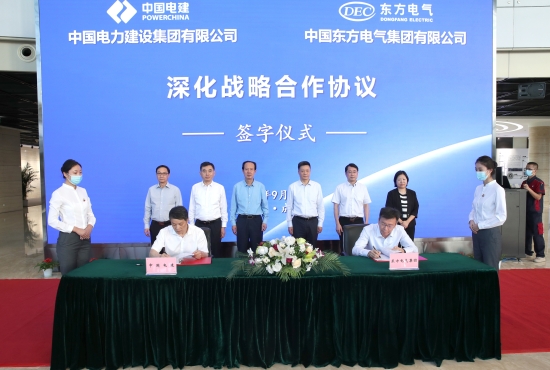 東方電氣集團(tuán)黨組成員、副總經(jīng)理李忠軍與公司總經(jīng)濟(jì)師劉明江代表雙方在深化戰(zhàn)略合作協(xié)議上簽字。