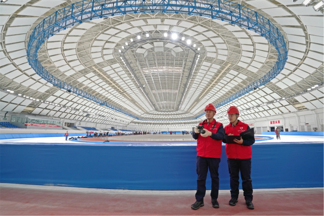 ▲國網(wǎng)黑龍江電力員工對(duì)亞冬會(huì)速滑館進(jìn)行特巡