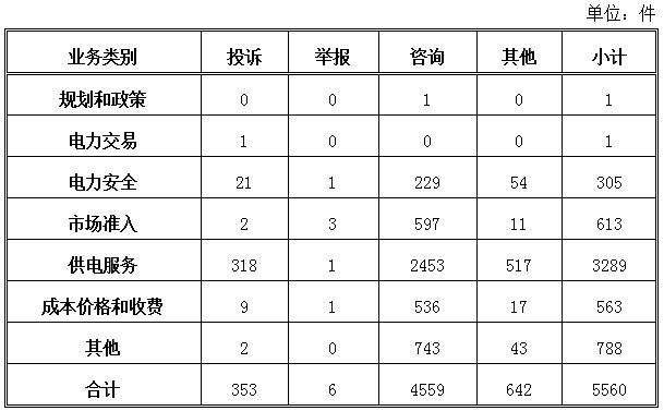 投訴舉報(bào)主要集中在電力行業(yè),共359件。從業(yè)務(wù)分類情況看,電力交易方面1件,占0.28%;電力安全方面22件,占6.13%;市場準(zhǔn)入方面5件,占1.39%;供電服務(wù)方面319件,占88.86%;成本價(jià)格和收費(fèi)方面10件,占2.79%;其他方面2件,占0.56%。(2018年5月電力行業(yè)有效信息按業(yè)務(wù)分類情況見表二)