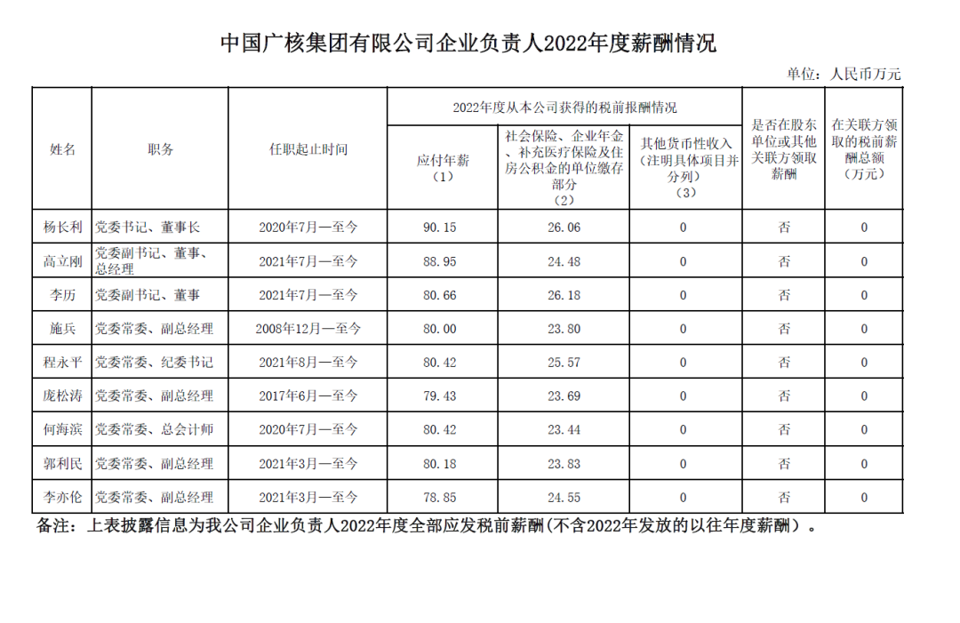 近日,南方電網(wǎng)、中國華能、大唐集團、國家電投、中廣核、三峽集團、中核集團等電力央企披露負責(zé)人2022年度薪酬情況。(2021年度各大電力央企薪酬請查看下方鏈接)