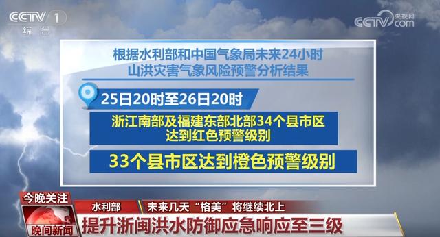 根據(jù)水利部和中國氣象局未來24小時山洪災(zāi)害氣象風(fēng)險預(yù)警分析結(jié)果,25日20時至26日20時,浙江南部及福建東部北部34個縣市區(qū)達到紅色預(yù)警級別、33個縣市區(qū)達到橙色預(yù)警級別。根據(jù)《水利部水旱災(zāi)害防御應(yīng)急響應(yīng)工作規(guī)程》,水利部將針對浙江、福建兩省的洪水防御Ⅳ級應(yīng)急響應(yīng)提升至Ⅲ級。