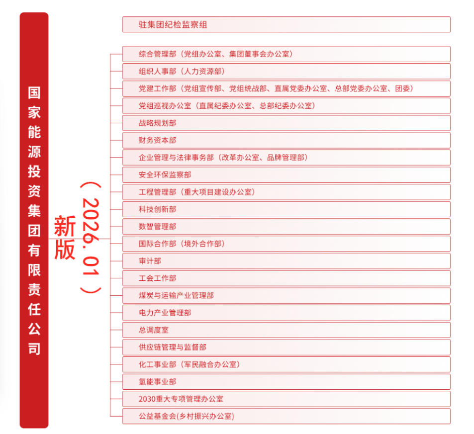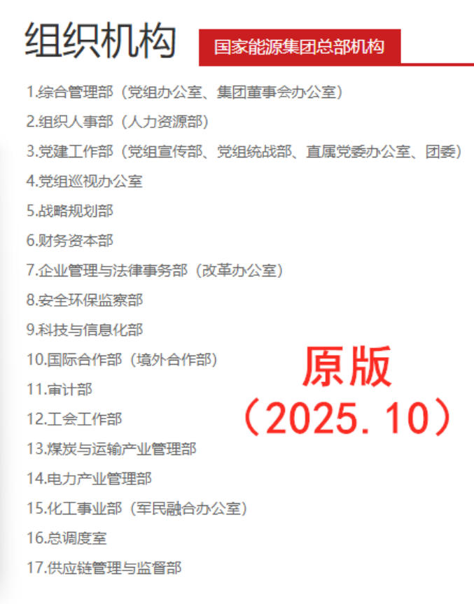 日前,國家能源集團官網(wǎng)改版并更新“組織架構”信息。