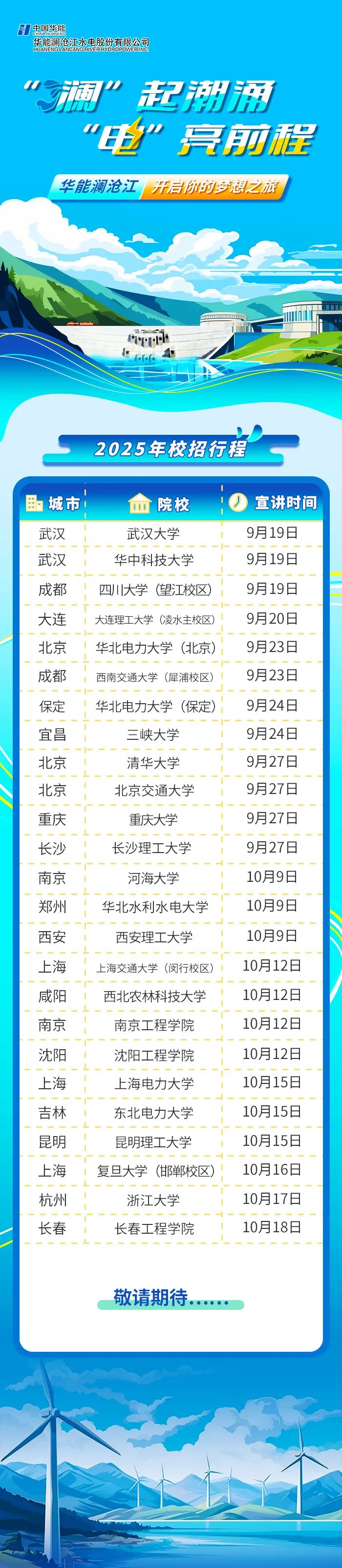 華能瀾滄江水電股份有限公司2025屆校園招聘進校宣講行程
