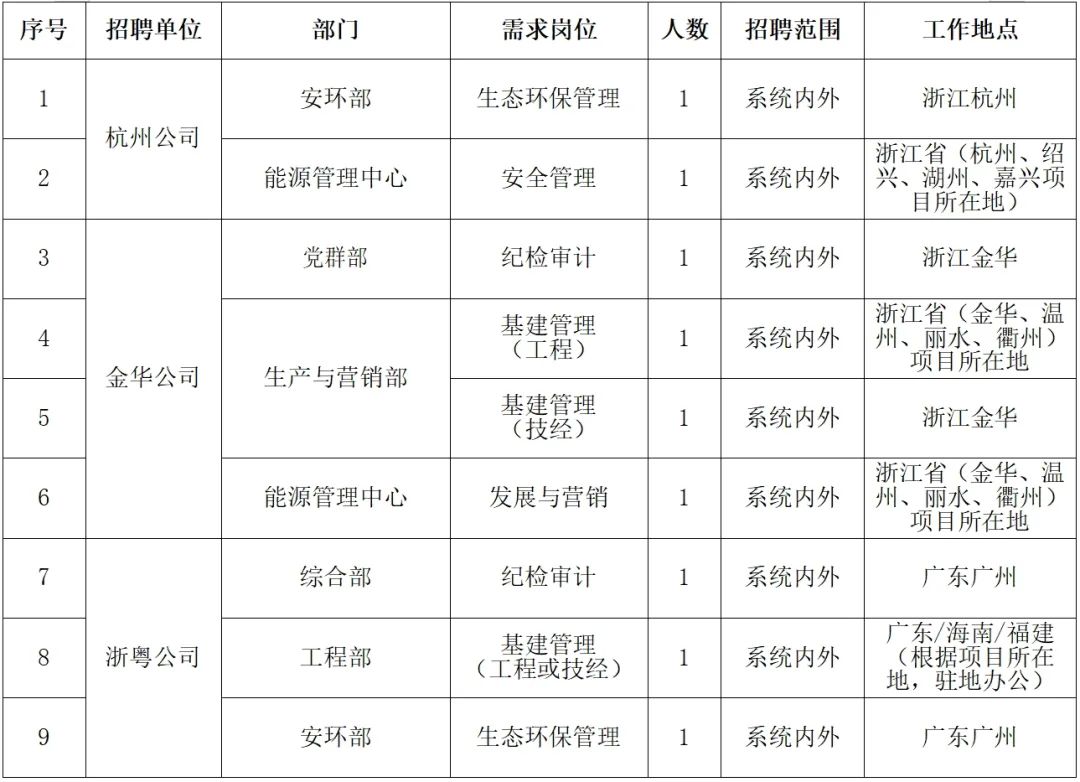 詳見《國家電投集團(tuán)浙江公司招聘崗位職責(zé)及任職條件》(附件1)。