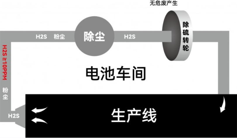 在固態(tài)電池規(guī)?;a(chǎn)線中,除常規(guī)活性炭外,普沃思自主研發(fā)的H?S吸附轉(zhuǎn)輪吸引了多家電池企業(yè)固態(tài)電池中試線的關(guān)注。該技術(shù)無(wú)需像活性炭那樣定期停機(jī)更換過(guò)濾器,也不產(chǎn)生危廢。
