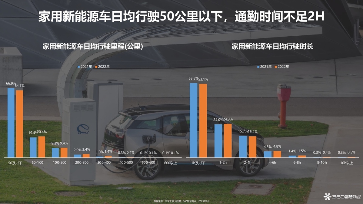 而從“家用電動汽車日均行駛50KM以下,通勤時(shí)間不足2H”我們也不難看出,家用新能源汽車在下沉市場的比例正在增加——高頻但低容量的通勤距離和時(shí)長以及低用車成本讓新能源汽車成為“小鎮(zhèn)青年”日常通勤、出行的好選擇。