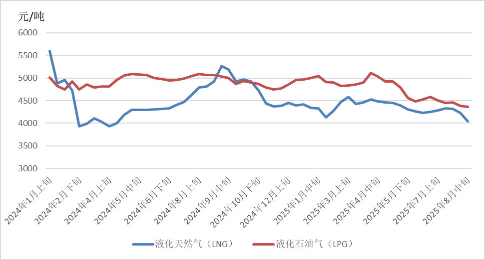 截至8月25日,普氏日韓LNG(JKM)期貨價(jià)格收于11.55美元/百萬(wàn)英熱單位,月環(huán)比下降2.74%,相較2024年同期的13.82美元/百萬(wàn)英熱單位,下降16.43%。
